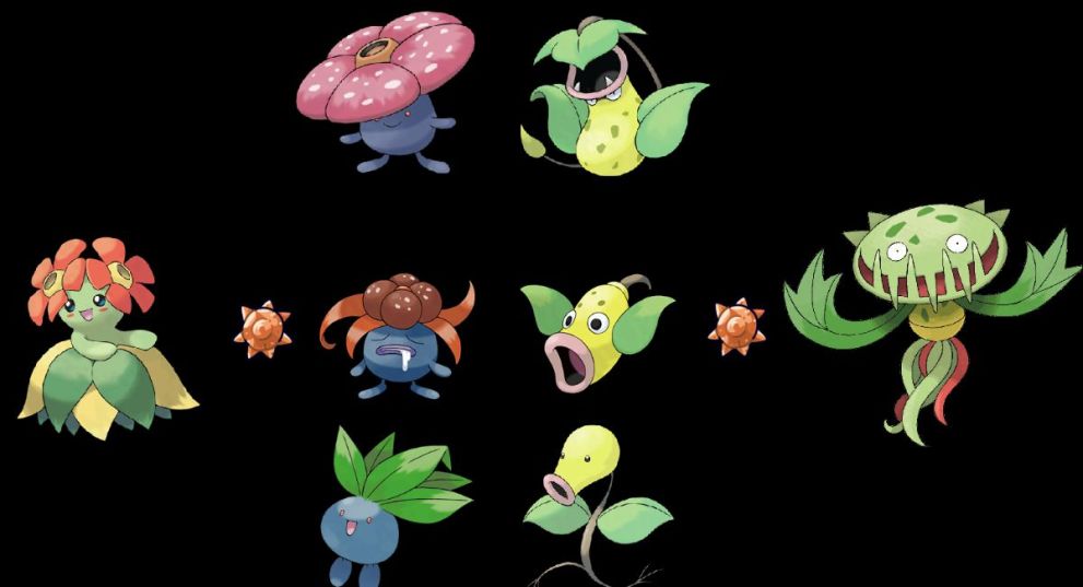 Furthermore, Bellossom was introduced in Generation 2, and Carnivine was introduced in Generation 4, meaning that both of these possible Sun Stone evolutions would be Pokemon introduced in a later Generation to where the evolution line originates from. With Carnivine and Weepinbell both being species based on carnivorous plants that share very similar color palettes, I’m quite fond of this theory – especially as it would give the quirky and unique concept of Carnivine more presence and belonging as a Pokemon species.