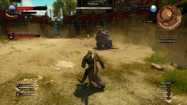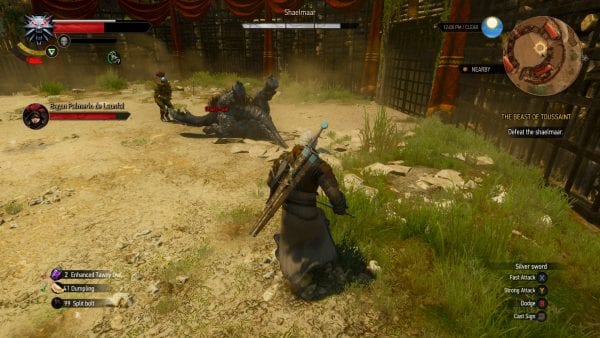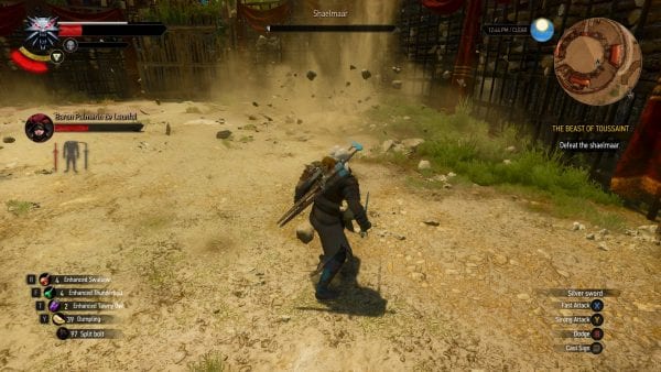 The Shaelmaar is quite possibly the toughest boss in Blood and Wine. It can deal out an incredible amount of damage, and, if you don’t know what you’re doing, you can break your weapon on this beast without even breaking a sweat. It’s incredibly high defense is no joke, and unrivaled in the entire game, and the ferocity of its attacks are enough to completely remove Quen’s protection. To make matters worse, you’re protecting another fighter throughout the match, one who can no longer defend himself.