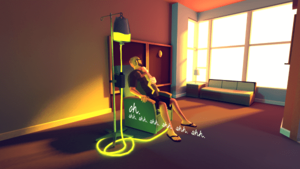 Using a single button, you’ll interact with cell phones, letters, or people that often play authentic sound clips of Ryan and Amy discussing further or failed treatment options or their hopes and dreams for Joel’s future. These sound clips of Joel and his family are the defining feature of these characters, and while their physical forms may not have any feature per se, I still walked away feeling like I actually knew the Greens in real life. With the exact same button used to activated these sound clips, you’ll leap over gaps in an old-school video game used to represent the story of ‘Joel the Brave Knight,’ save characters in powerful metaphorical scenes and blow bubbles for Joel’s entertainment.