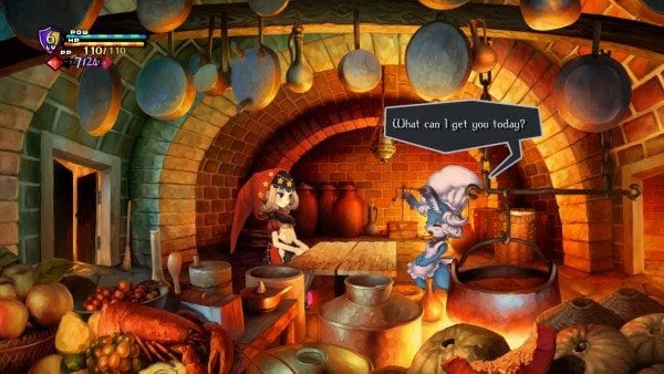 When you enter a rest area in a dungeon, you can even call up a chef and have him prepare delicious dishes with the food items you’ve gathered on your journey. These will give you experience points, and also increase your maximum HP. Collecting food and alchemy recipes from around the various dungeons soon becomes a bit of an obsession, as every little thing you can find in the game might give you an edge in the next fight. Plus, it’s always charming to watch a little Pooka rush up to you with a plate of seriously delicious looking herb-roasted shrimp, with the homely sounds of cooking and pan-frying playing in the background. Odin Sphere Leifthrasir’s story about war and family can get a little dark at times, but it sure knows how to lighten the mood with comforting artwork and cutesy food-serving animals.