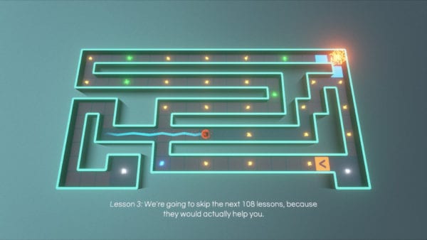The first few levels of Road to Ballhalla exist to give players a sense of what they’re in for. Walls along the outside edge of the course keep your marble from falling off into the void, but don’t expect the hand-holding to last long. The walls soon disappear, and players are left to fend for themselves amid the sea of damaging floor tiles, deadly lasers, and much more. Along the way, puns and “advice” from the game’s creators push players to be the best ball they can be.