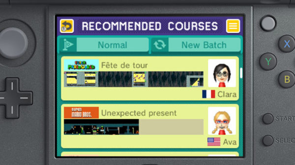 Online courses come in two options again: the 100 Mario Challenge and Recommended Courses. 100 Mario challenge has you playing through a world of a selected difficulty with 100 lives to do so. This mode can only be played while you’re connected to the internet. Recommended Courses, on the other hand, gives you a batch of recommended courses based on a difficulty level, and you can get a new batch at any time. You also have the option of downloading these levels to play later while you’re offline. These player-created courses are the main appeal of Mario Maker on 3DS and of course you’ll find both good and bad, it would just be nice to have easier ways to search for levels.