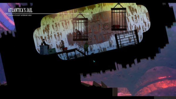 This is also where the game flexes its artistic muscle, as the interiors of the buildings are actually fully stylized, and feature gorgeous drawn characters and backdrops that really give Diluvion a unique aesthetic appeal. Essentially you move from a 3D to a 2D space when recruiting crew members or trading, which adds a great level of depth to the peculiar environment you’ve found yourself in.