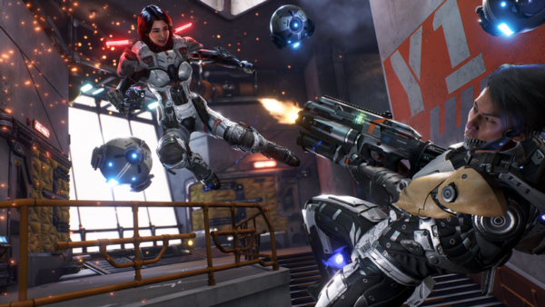 My main class of choice was the Enforcer, sort of an offensive support hybrid class that could increase the movement speed and rate of fire of himself and surrounding allies, while also being able to toss out EMP grenades that would temporarily disable enemy abilities. The more interesting classes are the offensive ones, such as the Gunslinger and Assassin, neither of which have much health, but are able to deal damage in interesting ways. The Gunslinger has a teleportation ability that lets him get behind enemies easily, while the Assassin is able to hook her enemies (or environments) with a line and pull herself in before slashing them with a knife. Each class also has a special primary ability (similar to an ultimate in Overwatch) that could potentially turn the tide in a game.