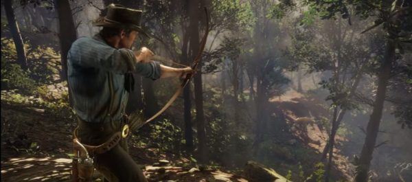 Right after that we get a look at a returning mechanic and a new weapons. Morgan is using a bow to hunt a deer in the forest, a weapon that never featured in the first game, but could be incredibly useful with how silent it is. It also means that hunting returns in the game at least in some way, which was a big feature in the first Red Dead Redemption.