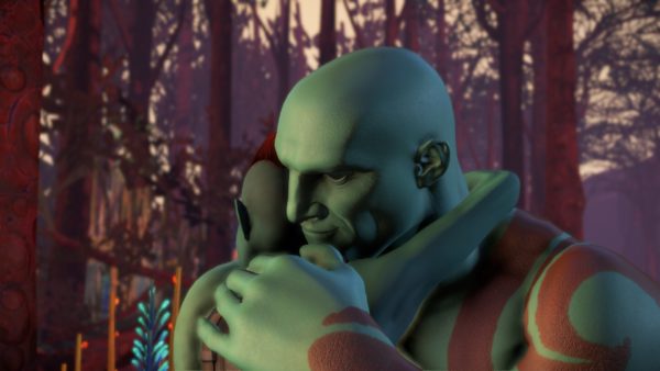 In episodes two and three, Guardians of the Galaxy had shone the spotlight on a few individual guardians, namely Rocket and Gamora (as well as her relationship with Nebula). Episode four marks the turn of everyone’s favorite dopey green warrior to take center stage, and while it definitely tugged at my heartstrings, it’s shortlived. Drax has always been my favorite guardian for the way he takes everything so literally, providing ample comic relief, but also for the simplicity of his plight. He seeks revenge for his family and shows clear remorse for not being able to prevent their untimely demise. Alas, I was left feeling Telltale only scratched the surface of Drax and his motives for joining the Guardians. Whether this was down to something in the fine print of the license agreement with Marvel or not, I’m not entirely sure, but it definitely stands out as the weakest spotlight moment for one of the guardians.
