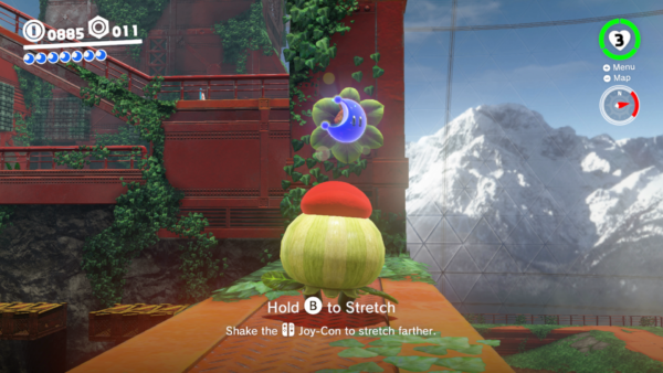 While incredibly simple, playing as Uproot is oddly satisfying as you completely ignore platforming challenges and hazards by simply stretching over them. The stretch even doubles as an attack, allowing you to take out aerial enemies and objects by basically growing right through them. Most of the Wooded Kingdom’s Power Moons can be attained with this little guy, and just watching him hobble around is joyful.
