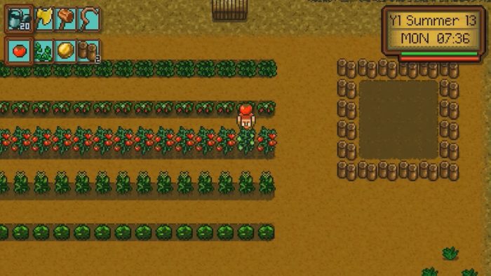 That said, the first thing that should come to mind is to start fixing your estate. The land is littered with grass, wood, and rocks, so it’s up to you to clear them. Players start off with the standard farming tools (watering can, hoe, hammer, etc.) and you can buy seeds at the general store. The farming mechanics are fairly standard, with players tilling the land with their hoe, planting their seeds, and watering them every day.