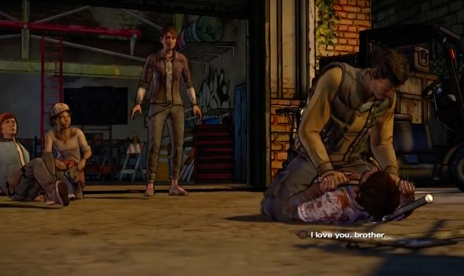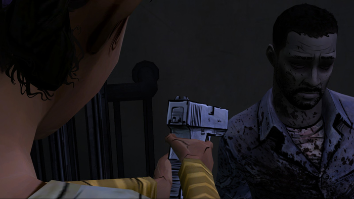 It all comes to a head after saving Clementine. No longer strong enough to keep walking, he collapses, leaving Clem to escape on her own. She proves herself capable enough though, killing a Walker and finding a way to escape.