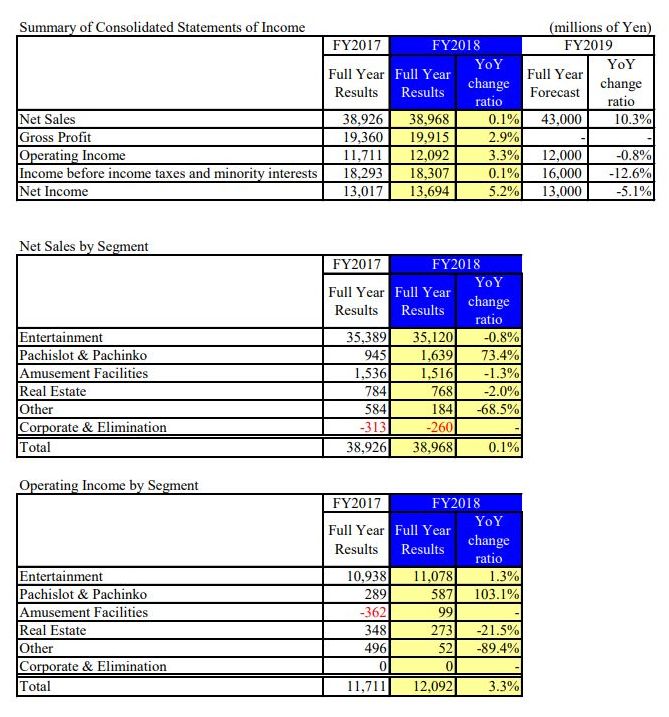 Below you can find a table with the financial results for the fiscal year. All relevant figures for the company as a whole were positive and improving since the past year. The Entertainment business, which includes games, saw a small decrease in sales, but an increase in operating income.