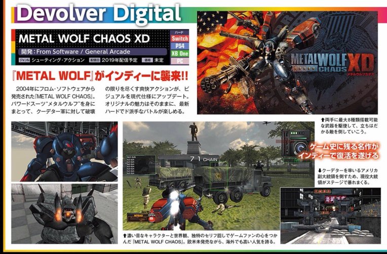 EDIT: Famitsu has commented on Metal Wolf Chaos XD coming to Switch, saying that it was indeed a typo mistake and currently Devolver Digital has no plans on bringing the game to the platform at this time.