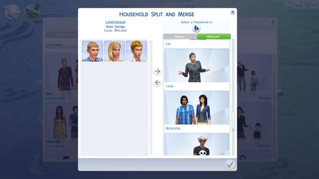 Alongside that, you can also merge houses into one, taking families from two houses and creating one living space. If you do this, players will get an option to sell all of the furniture from the left sides house and transfer it to the merged Household.