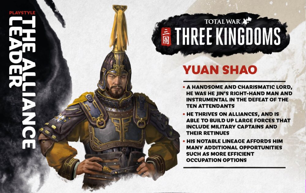 Yuan Shao’s strength comes from his ability to form coalitions and alliances from the very first turn, which gives him a huge advantage in terms of initial threat. There is safety in numbers, after all, and being the first to be able to ”squad up” will limit the number of threats you will need to worry about.