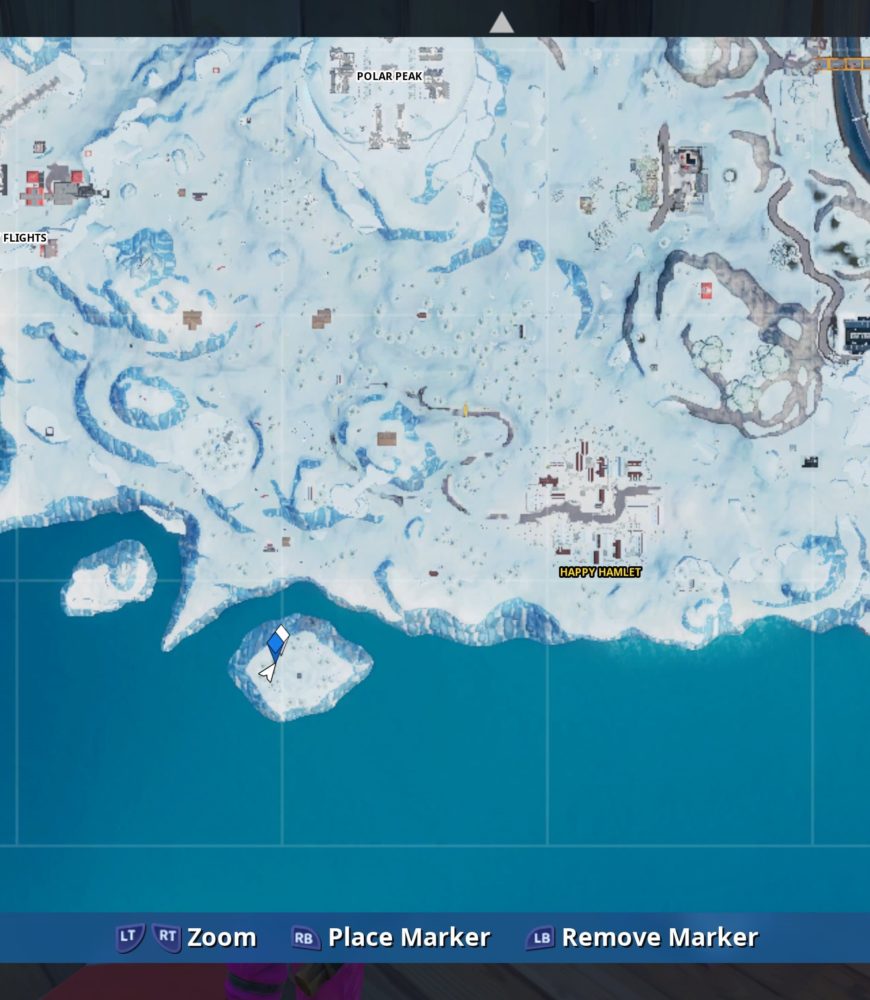 The snowy bunker we’re looking for is, obviously, in the snow biome located in the southwest section of Fortnite’s map. However, in order to track down this bunker specifically, you’re going to want to head to the island just southwest of Happy Hamlet.