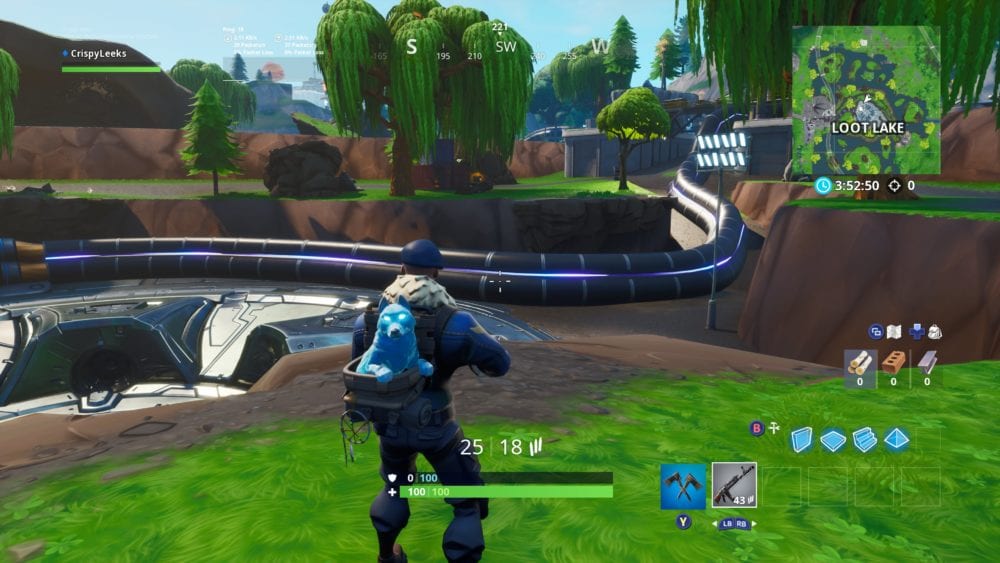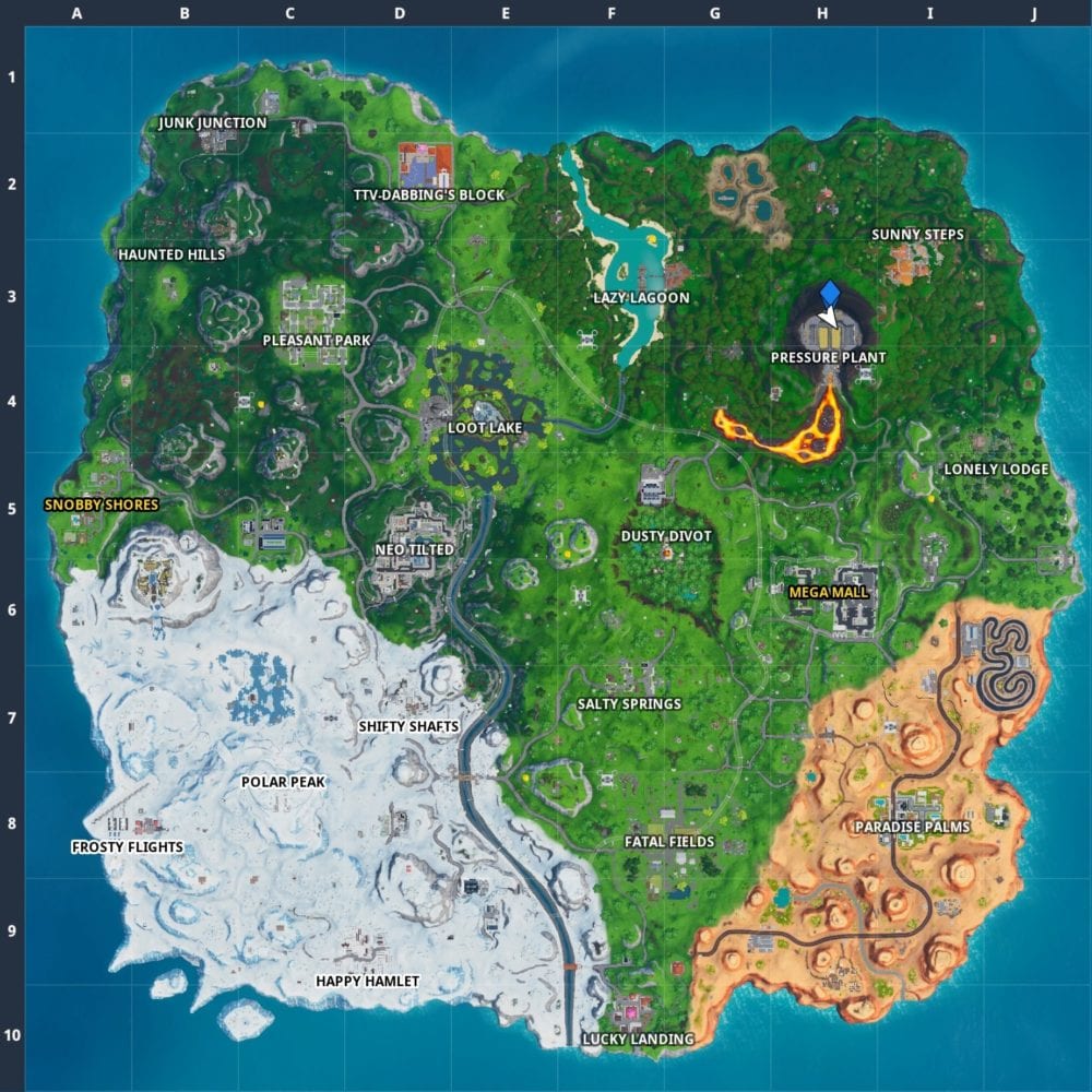 The Pizza style can be found on the east side of Look Lake in grid reference E4. The thing you need to keep an eye out for is the long tube that’s pulsing with lights, as shown in the screenshot below. You want to try and make sure you’re directly across from this, as shown in our second screenshot further down the page.