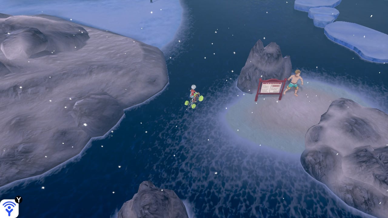 When you start riding your Rotom Bike on the water, keep as far right as you can past a bunch of tall, spiky rocks.