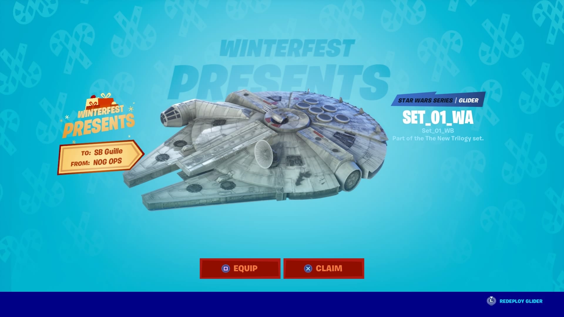 We already know that one of the gliders available is the Milennium Falcon, as shown in the screenshot above.