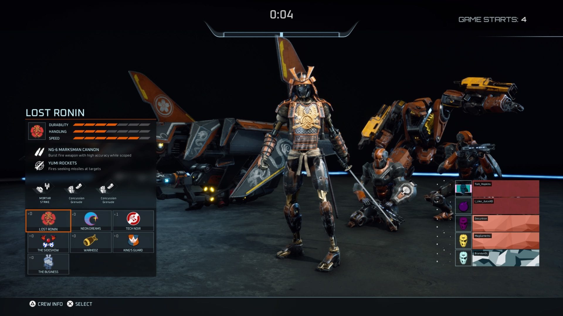 There’s Lost Ronin, who’s quick but harder to handle than others and has an accurate burst weapon; Warhedz uses remotely detonated sticky grenades; and my personal favorite, The Business, is an all-rounder who pairs a mini-gun with an immensely powerful shotgun attachment.