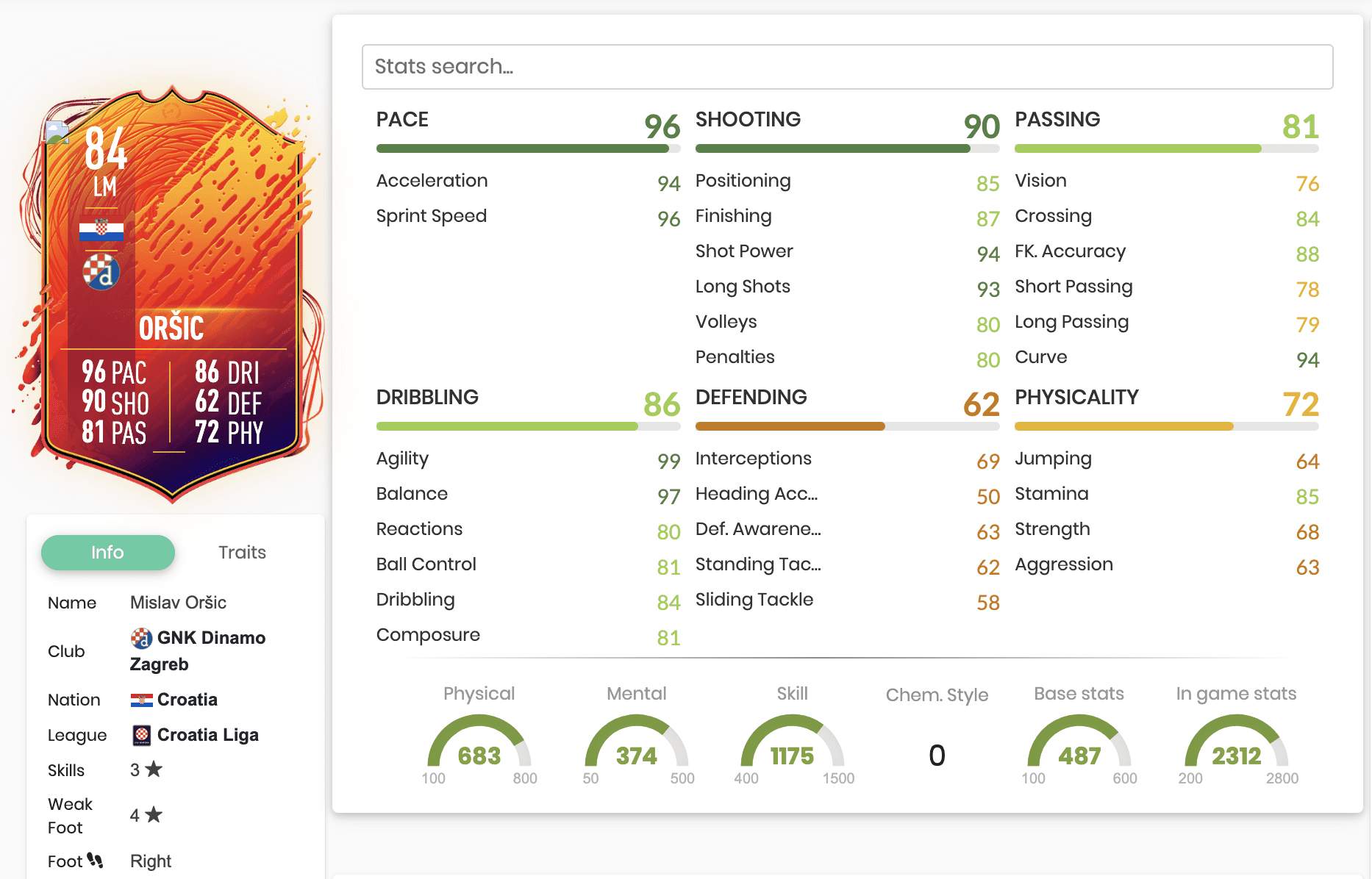 Orsic may be difficult to fit into most teams, being from the Croatian League, but he’s become one of this year’s overpowered unknown players, after his 82 rated inform got 95 pace and 85 shooting a few months ago.