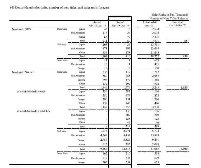 We also get the outlook for the current fiscal year, which will end on March 31, 2020. Nintendo predicts to sell 19.5 million Switch units in the twelve-months period, which would bring the total to 54.24 units if that goal was achieved.