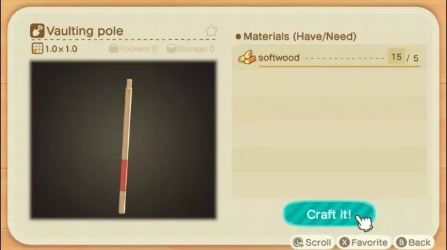 Making one isn’t the only way to get your hands on it, though. You can actually buy the vaulting pole if you visit the Nook’s Cranny shop.