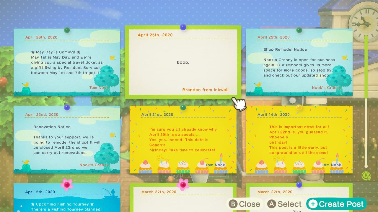 If you’re wondering why that yellow bird is there in the first place, there’s actually a purpose for that. The bird only shows up if you have an unread post on your bulletin board. Tom Nook, Timmy and Tommy, and friends that visit your island can make posts on it and the bird will show up to let you know that you have missed messages.