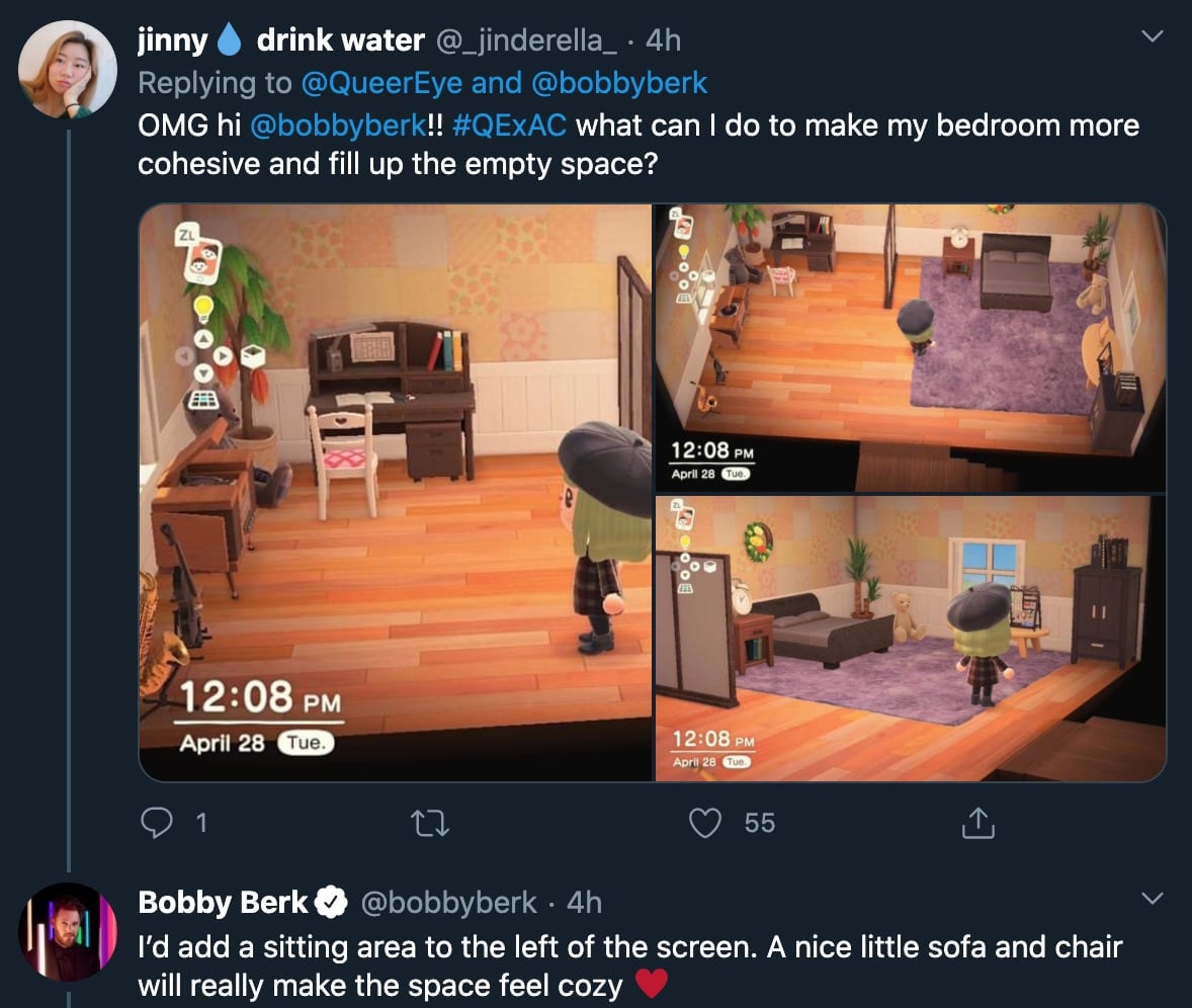 If you want to read all of the replies to the original tweet or get some design tips for yourself, you can check out the thread right here. However, Bobby Berk isn’t the only designer around here. Make sure to check out these Animal Crossing terraforming ideas right here and another article to help you pick out the perfect island name.