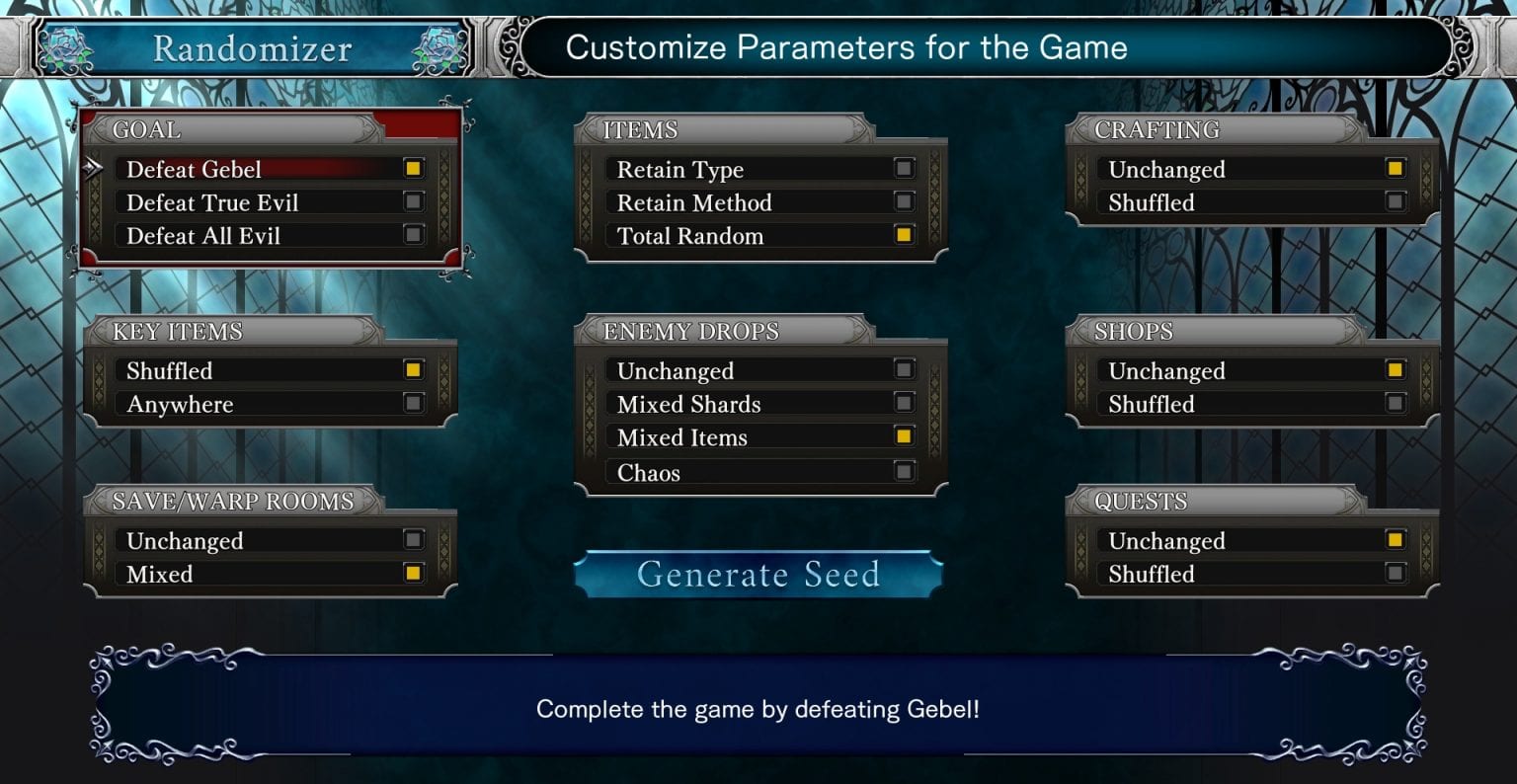 Starting the Randomizer Mode in Bloodstained Ritual of the Night
