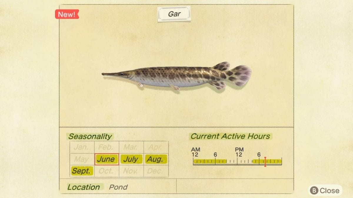 Animal Crossing New Horizons Gar: How to Catch, Location, Sell Price