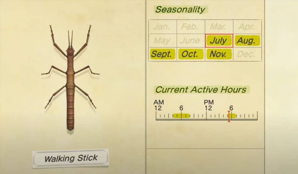 The Walking Stick can only be caught during the following months for each hemisphere: