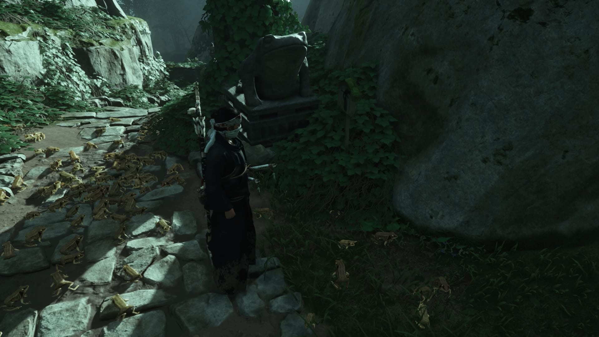 All hail the giant stone frog! Head east of old Yarikawa towards the shore and you’ll come across the alter.