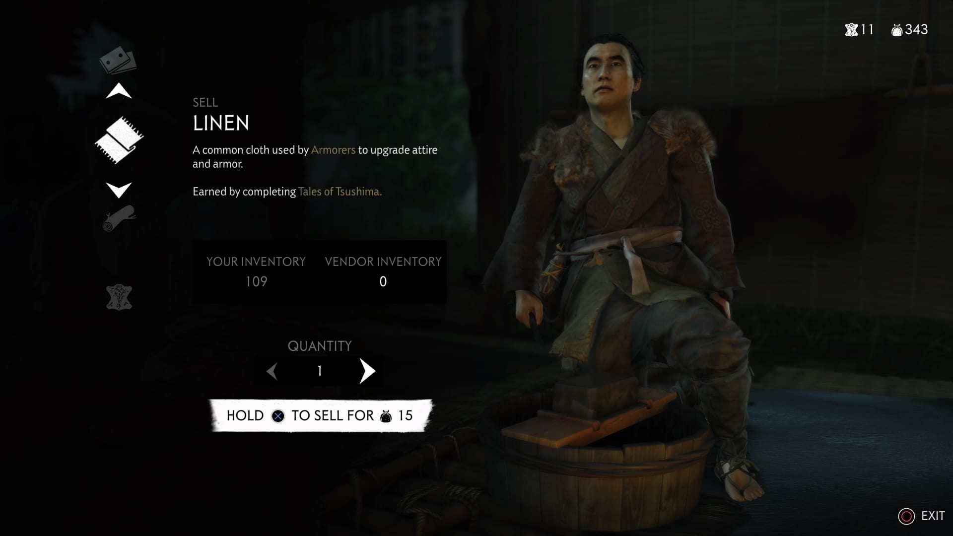 While there’s no crafting in Ghost of Tsushima, the various NPCs you can trade with in Ghost of Tsushima will want different materials for different items.
