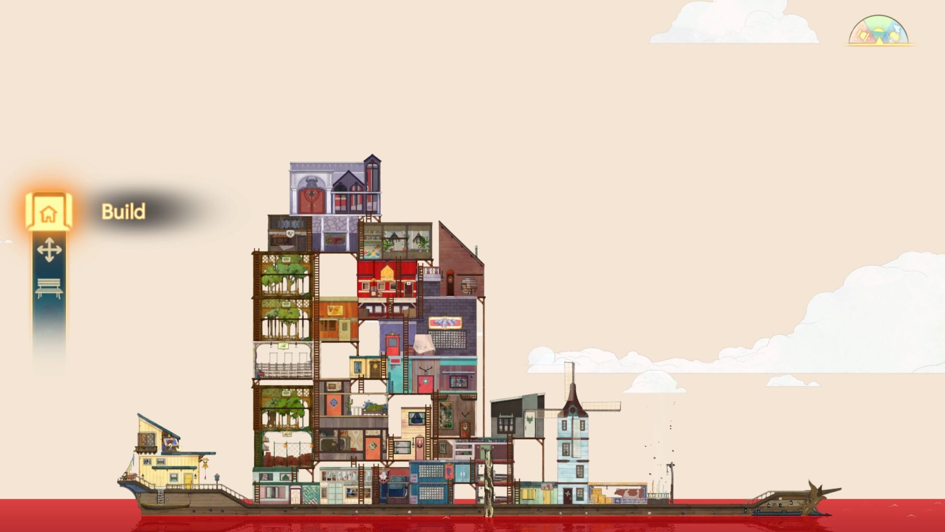 The aesthetic of the game only buoys this feeling. On the visual front, the 2D characters and world are shown in bright, pastel colors, bouncing and moving with the fluidity of a children’s cartoon. Spirits smile from ear to ear upon receiving their favorite meal, wither in anguish when they haven’t eaten in a day, and sprint for cover when a comet crashes down onto the deck of the ship.
