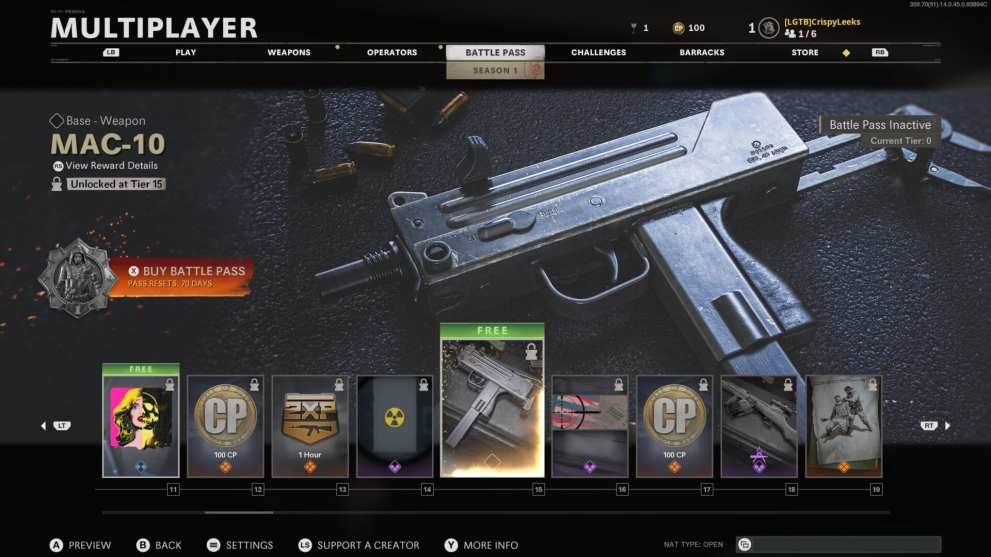 That being said, if you play a lot of Black Ops Cold War, we’d recommend getting the Battle Pass as you’ll unlock it far faster. The Season 1 Battle Pass is available for 1,000 CP, or you can spend 2,400 CP to get 20 Tiers for free, unlocking the MAC-10 immediately.