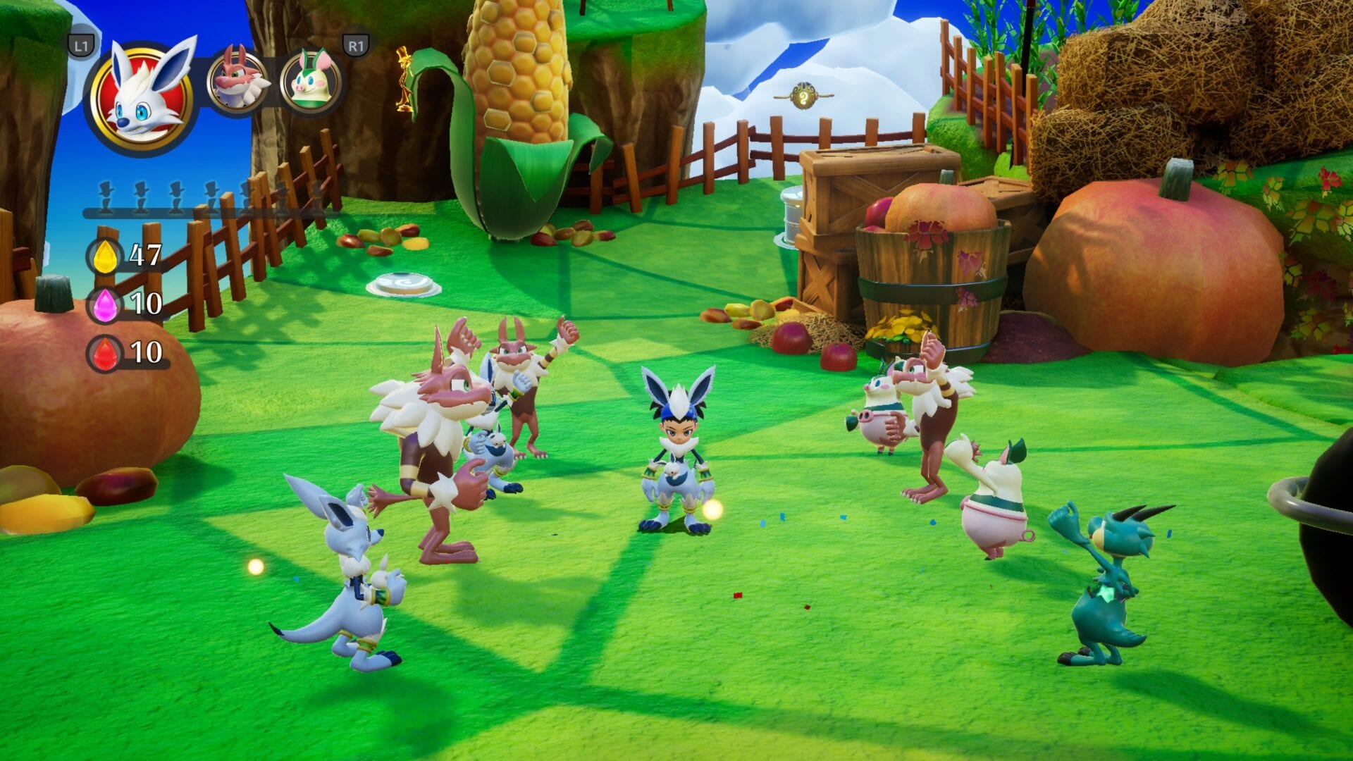 Also, you can collect different color gemstones that you can feed to these cute bunny-bird-like things called Tims that hangout in the overworld. These Gemstones change the properties of the Tims and they can then be used to assist you with various different perks when you’re out exploring in a Chapter.