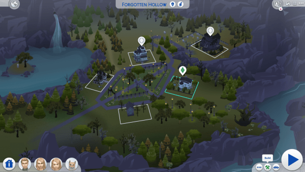 Once you’re there, select the world where your lot is and click on the lot. Don’t go into it– instead, go into Build Mode on the lot by clicking on the little hammer/wrench icon.