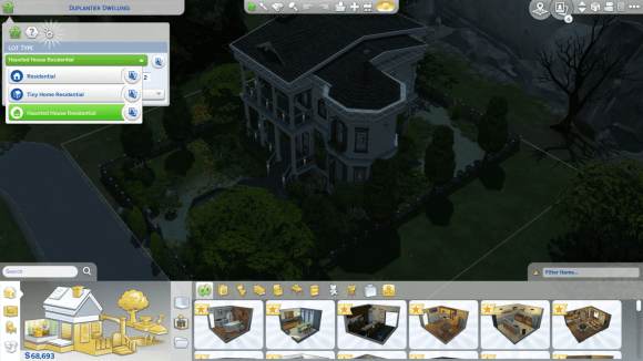 After you’re in Build mode, you just need to change the lot type in the top left. Make sure to select “Haunted House Residential.”