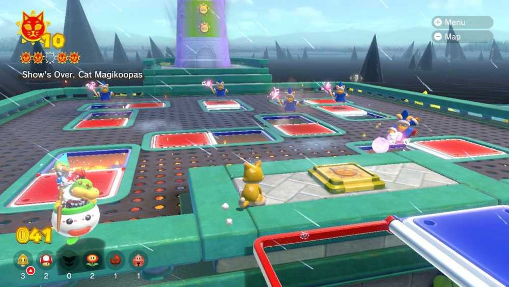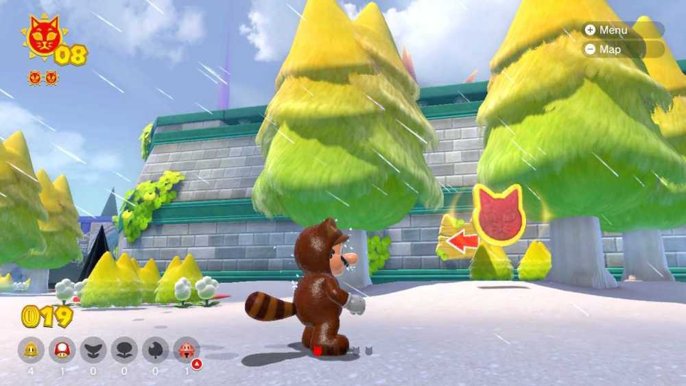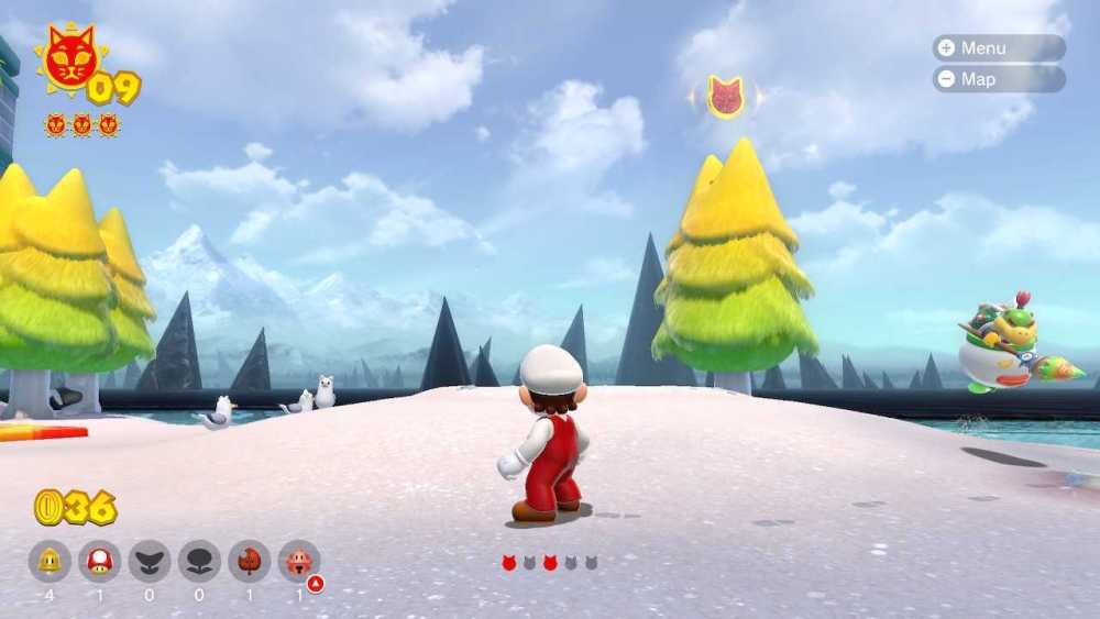All you need to do is eliminate all of these to get the Cat Shine. They all begin on one of the switch platforms. All you want to do is jump so that the platform is underneath them, then use Cat Mario’s pounce ability to attack and quickly take care of them. It’s very easy using this method.