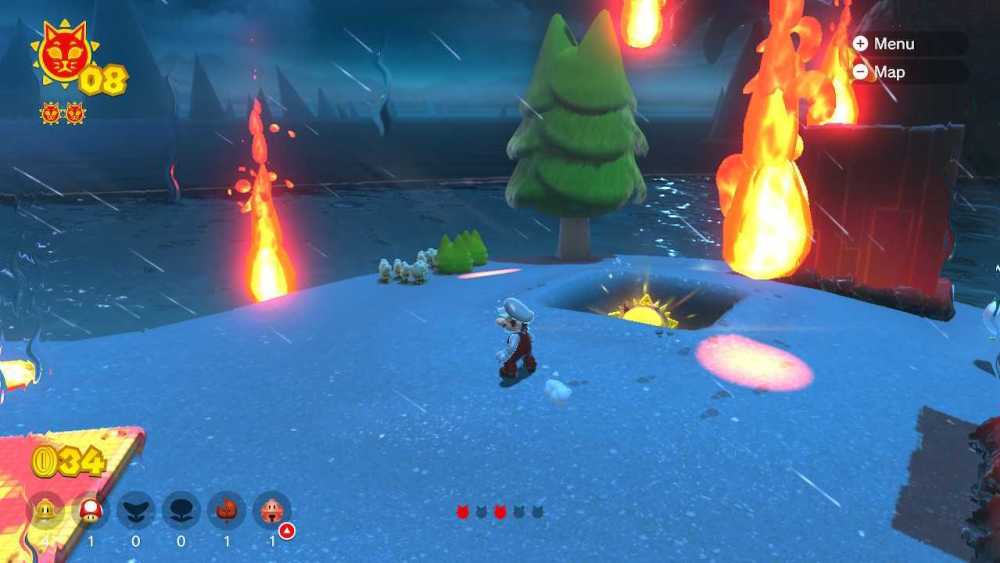 As soon as the sky goes all stormy, start making your way to these Fury Blocks. Once Bowser’s blasted them away, you’ll find a Cat Shine hiding at the very bottom.