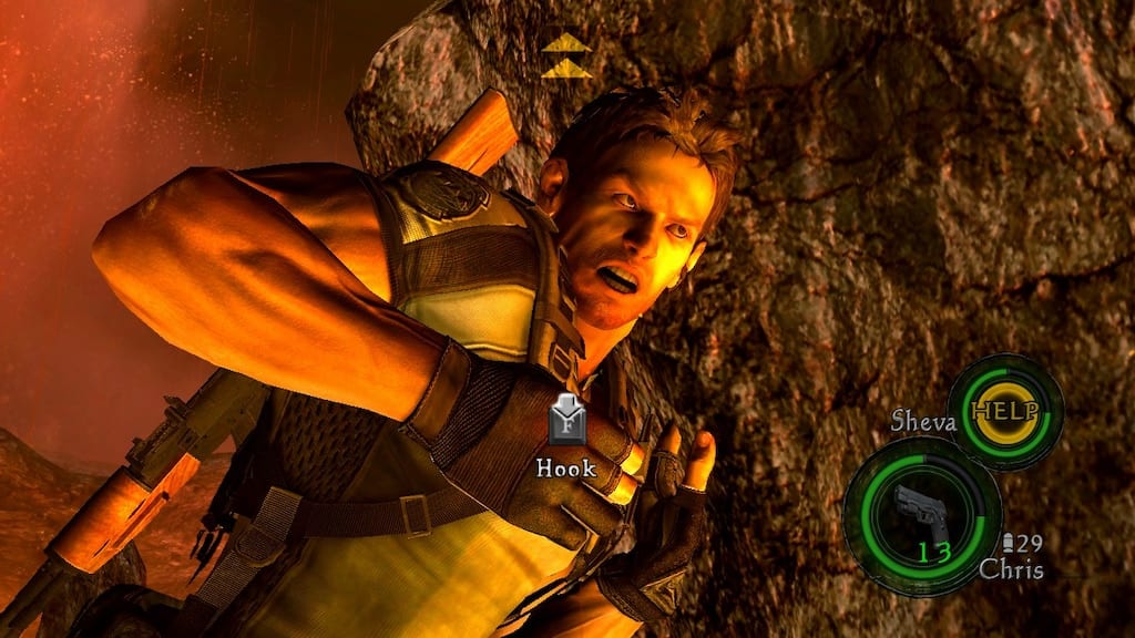 Players are battling Wesker, the series’ recurring main baddie, in a final boss fight to the death inside a volcano. The black coat-wearing schemer is throwing everything it has at Chris and Sheva, using everything from martial arts to slashes from monstrous limbs formed from infected flesh.