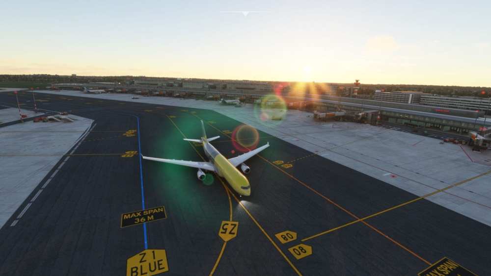 - Appropriate representation of the real-life airport's runway, taxiways, aprons, and their markings.