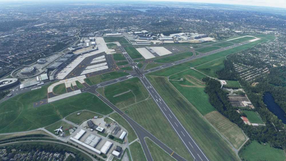 The landside area is very detailed, even thanks to the work on elevation mentioned before. The access ramps to the terminal, the parking lots, and the hotels all look very fetching. The level of detail achieved here is way superior to what’s featured in most add-ons nowadays.