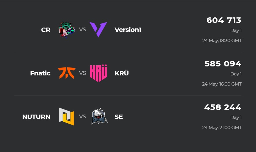 According to escharts, all three of the tournament’s first series were viewed by roughly 500,000 people on Twitch, peaking at 604,713 during the opening game. That’s a huge jump from the numbers seen during Masters 1, which was a regional tournament due to COVID-19 travel restrictions and peaked at around 150,000 in Europe, and 350,000 in North America by comparison — both figures during the tournament’s final games which obviously draw in the most interest.