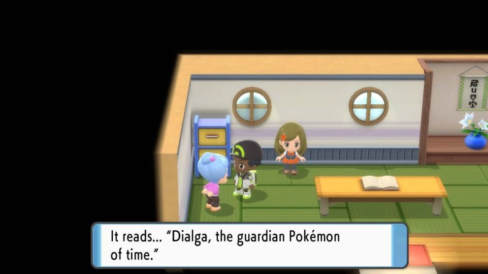 Speak to the elderly woman on the left and he’ll show you an image of the legendary that isn’t available in your game, which counts for the Pokedex entry.