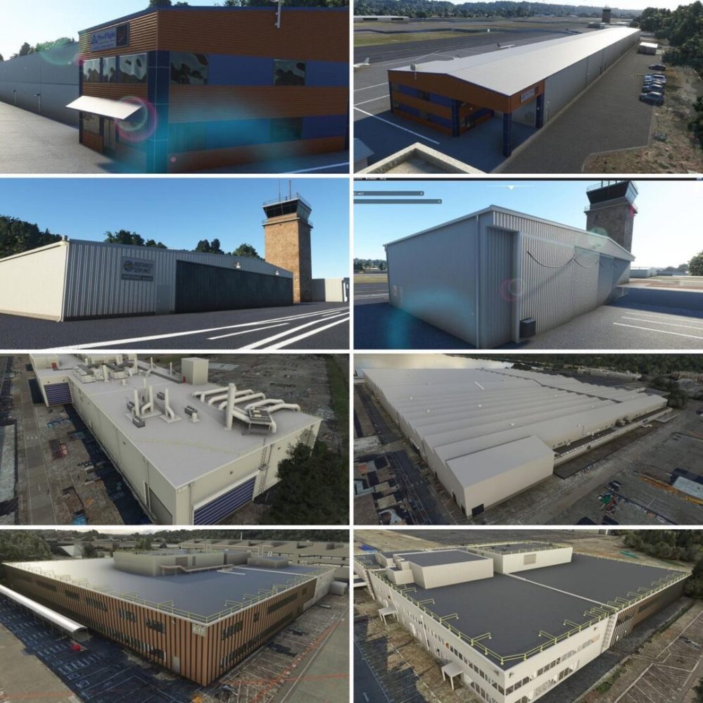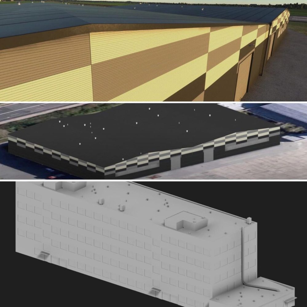 Next is a look at what’s in the works at Drzewiecki Design. The first batch of images shows buildings made for Renton Municipal Airport (KRNT) in the United States and the attached Boeing factory.