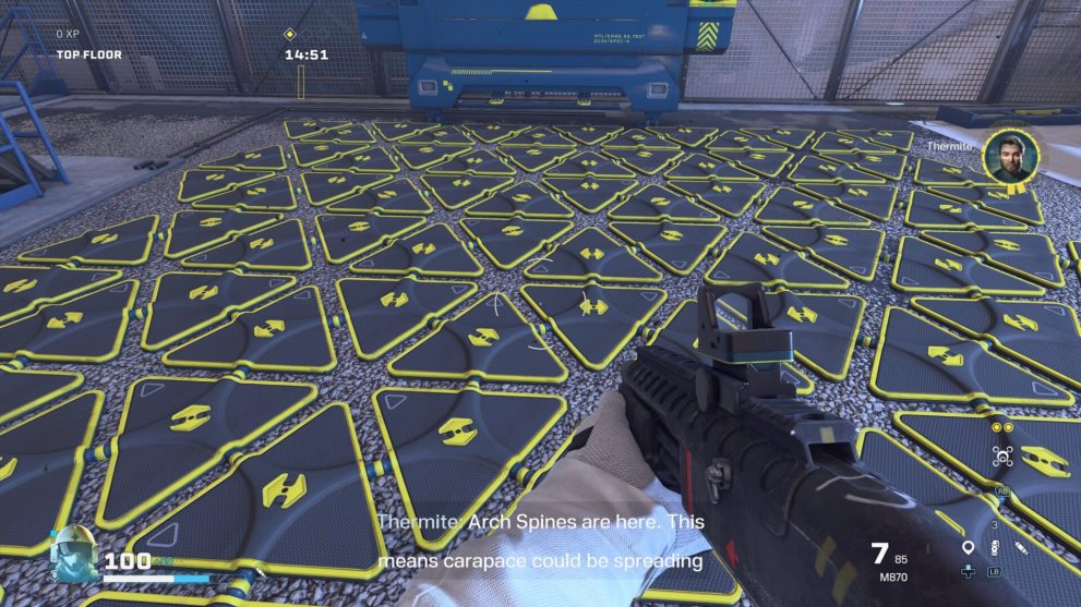 - Stand on the yellow and black patterned area on the floor in front of the machine within the 5-second timer and you’ll successfully exfil and return into Rainbow Six Extraction’s menus.