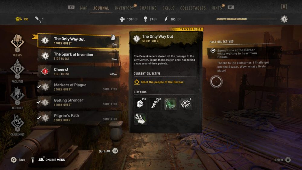 First things first, you’ll need to actually speak to the different people of the Bazaar — the area you’re in when you get the quest objective. To do this, press and hold the right analog stick in (R3) to use your Survivor Sense. This will highlight characters you can talk to with a green glow.