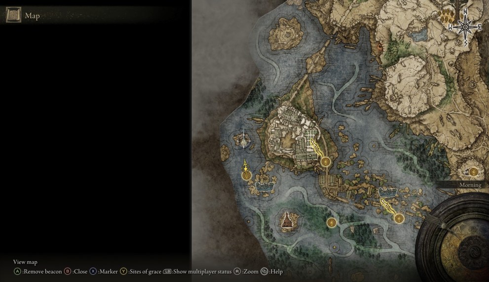 This will trigger an optional boss fight with Glintstone Dragon Smarag, but you don’t have to fight it if you don’t want to. Check the screenshot down below for the dragon’s location, where our cursor and beacon marker is.