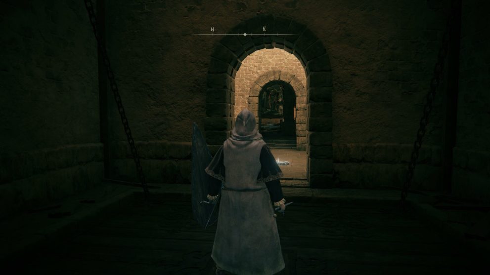 - Starting from this Site of Grace in Stormveil Castle (rampart tower), head through the southeast door and keep going until you reach a doorway to the left with an elevator. You may need to pull the nearby lever if the elevator is down.
