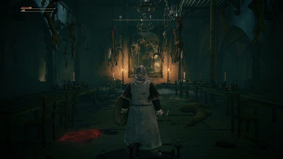 - Now on the bottom floor and having walked through the archway to face that painting you can see here, head to the door in the far left corner.